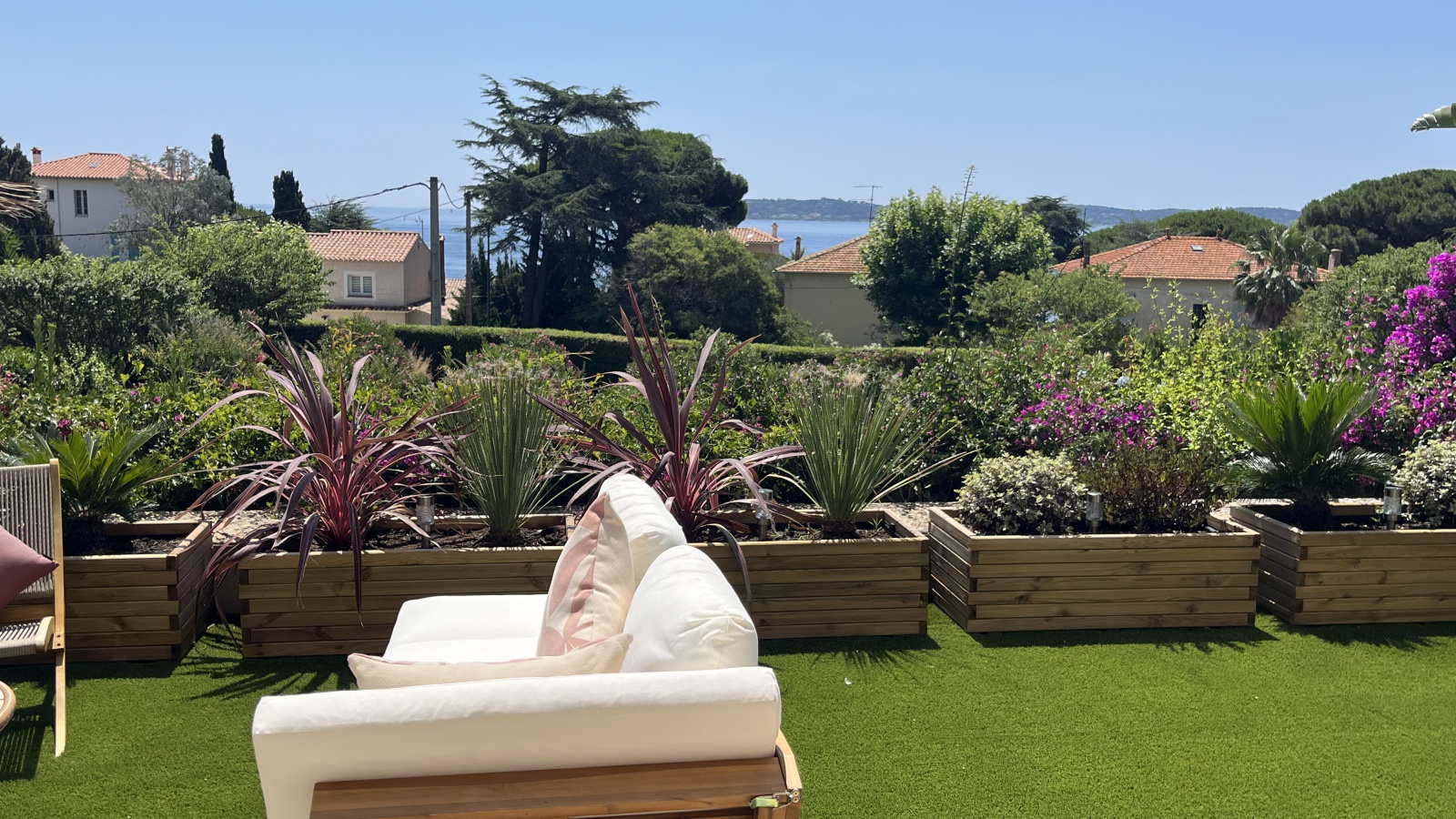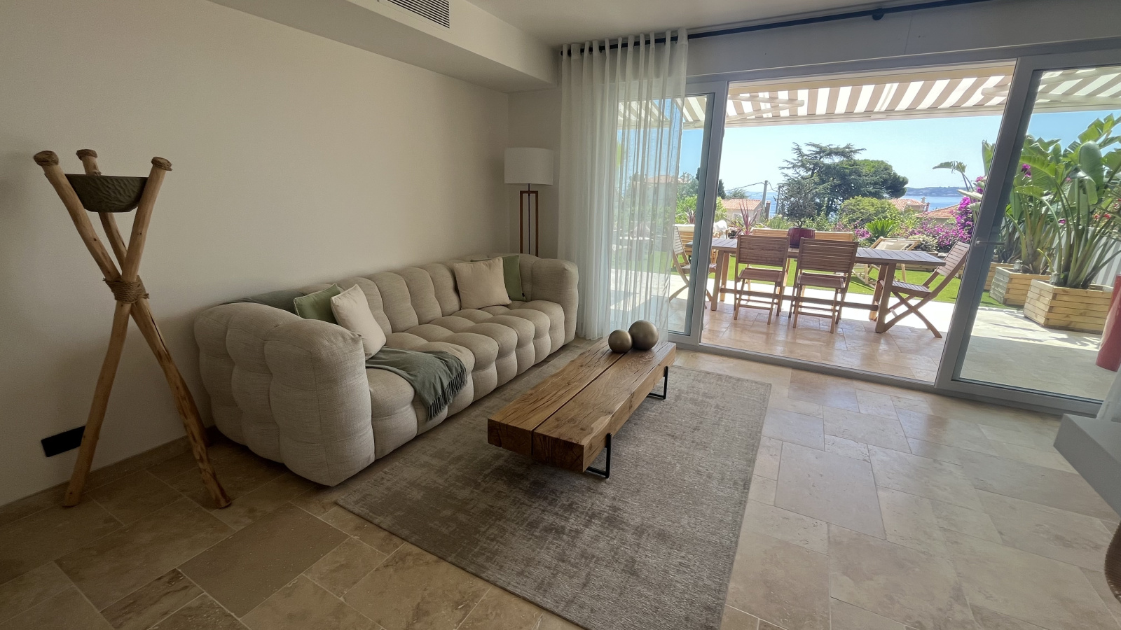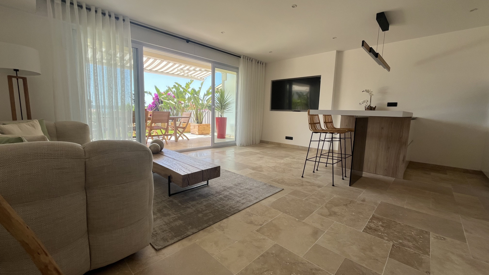 Véritable prolongement de la pièce de vie, la terrasse de plus de 50 m² invite à la détente tout en offrant une vue mer panoramique.