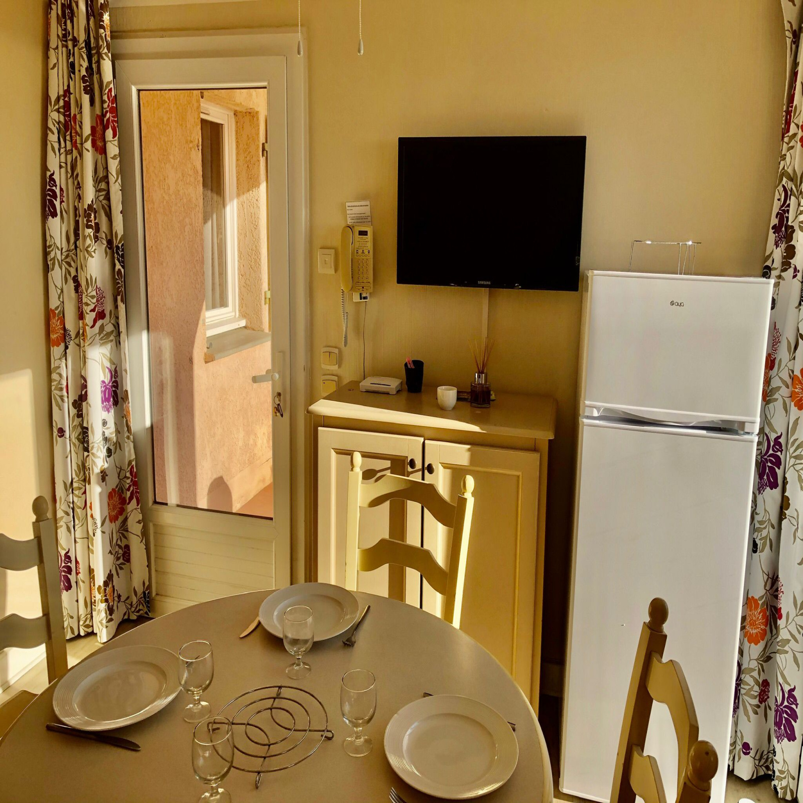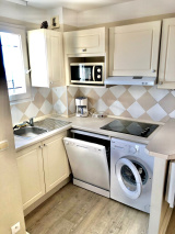 Il vous propose un séjour cuisine, une chambre et une cabine ainsi qu'une salle de bains.